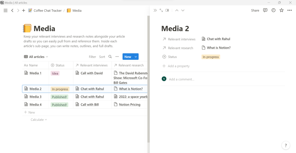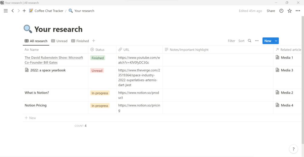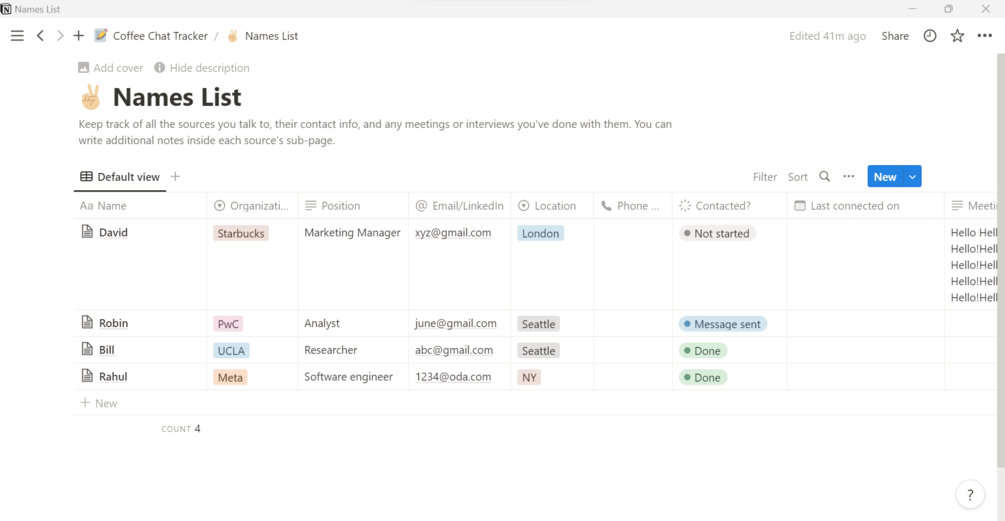 Notion template: Coffee chat tracker